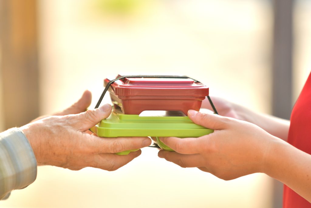 お弁当は手渡しでお届けし、お顔を見てお声がけすることで、日々の様子にも気を配っています。